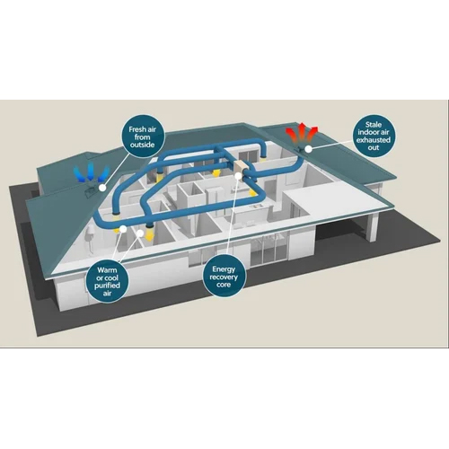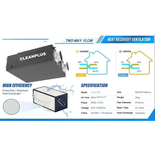 Energy recovery ventitaion system with a air flow of 500m3/h with a Pre-filter and a IFD Module for clean and fresh air enrisched with oxygen.